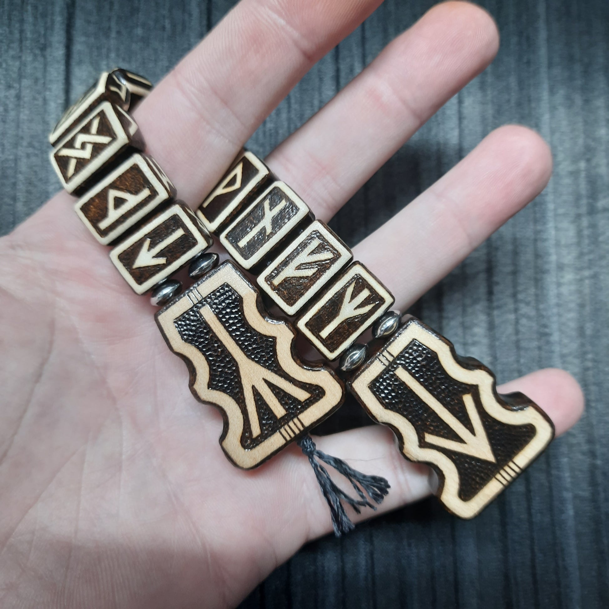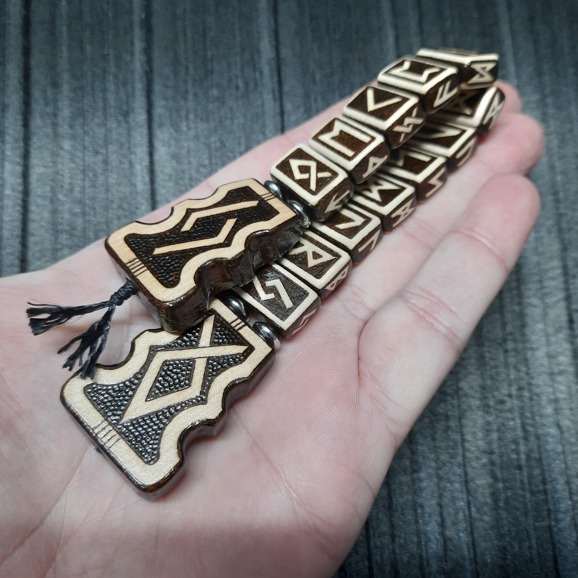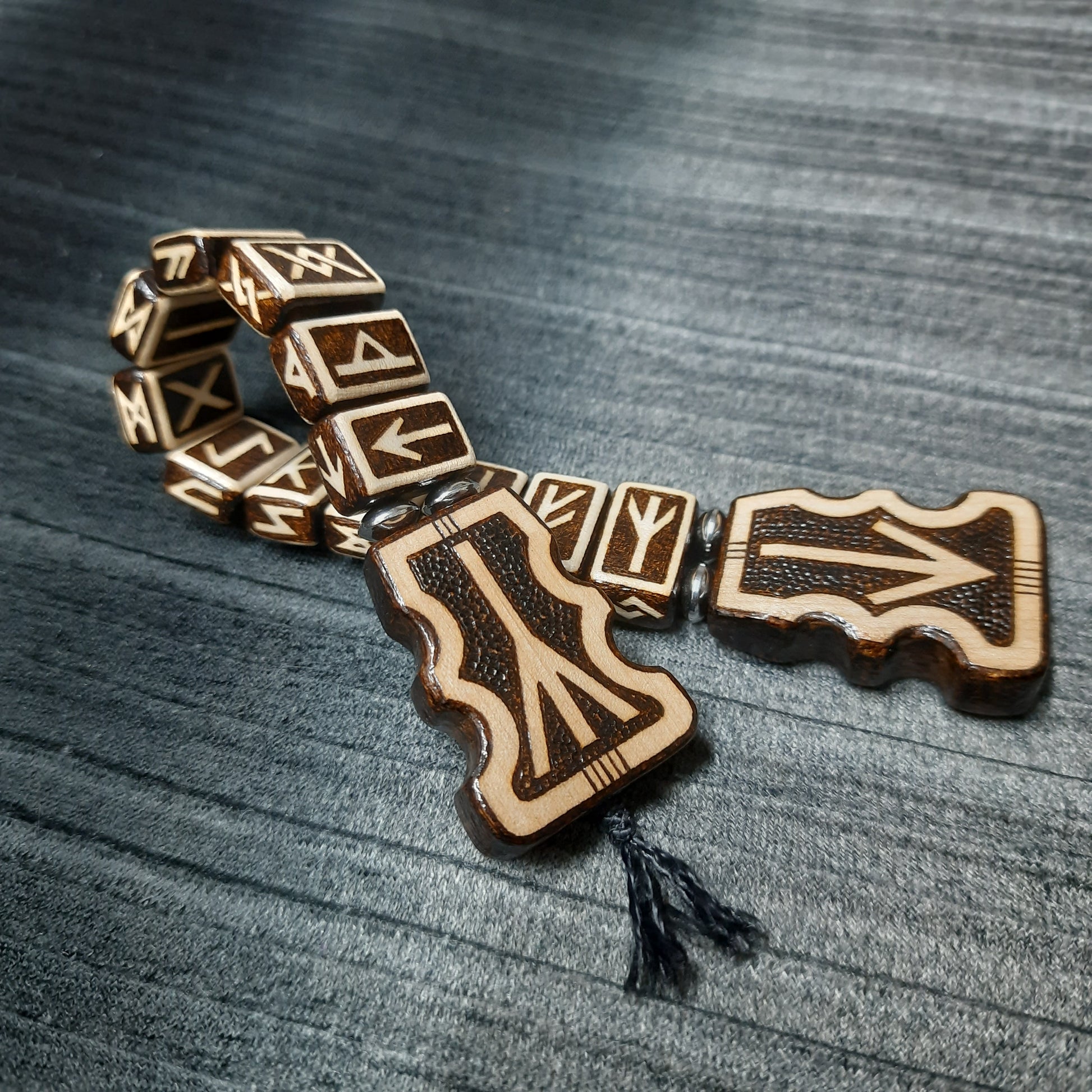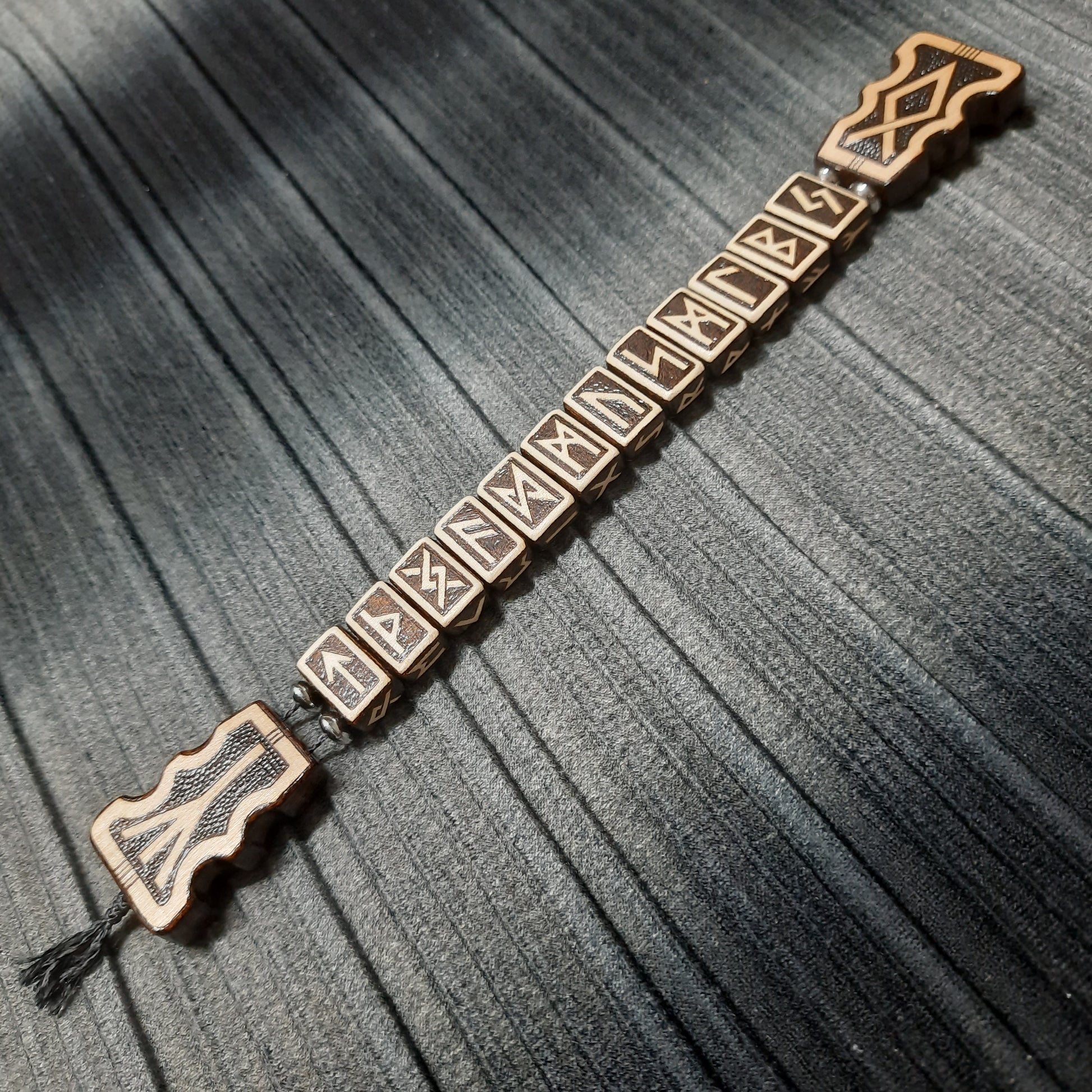 Chetki wooden "The mace of the Futhark" handmade (SCU: 250525)