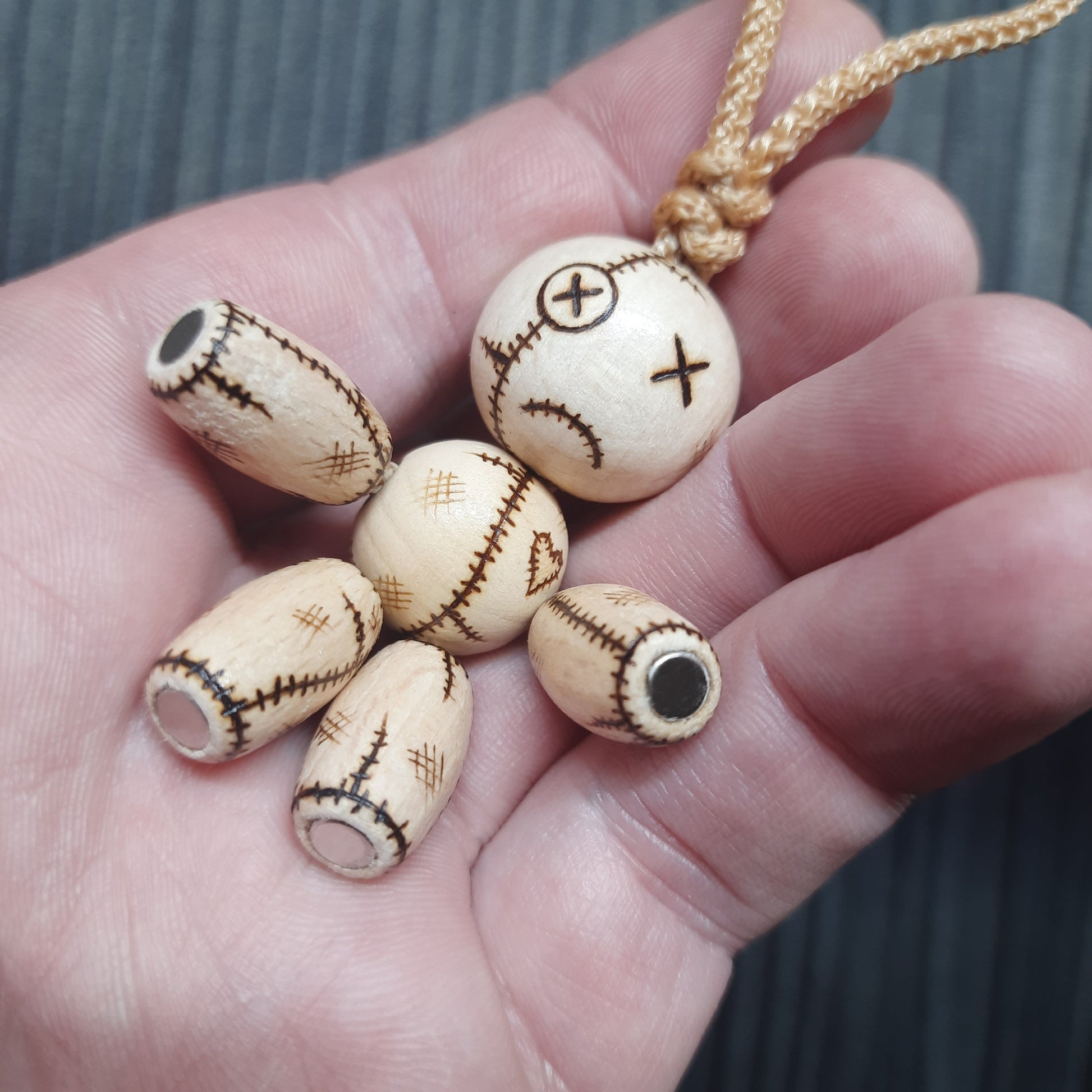 Material: wood, polypropylene cord, Neodymium magnet.