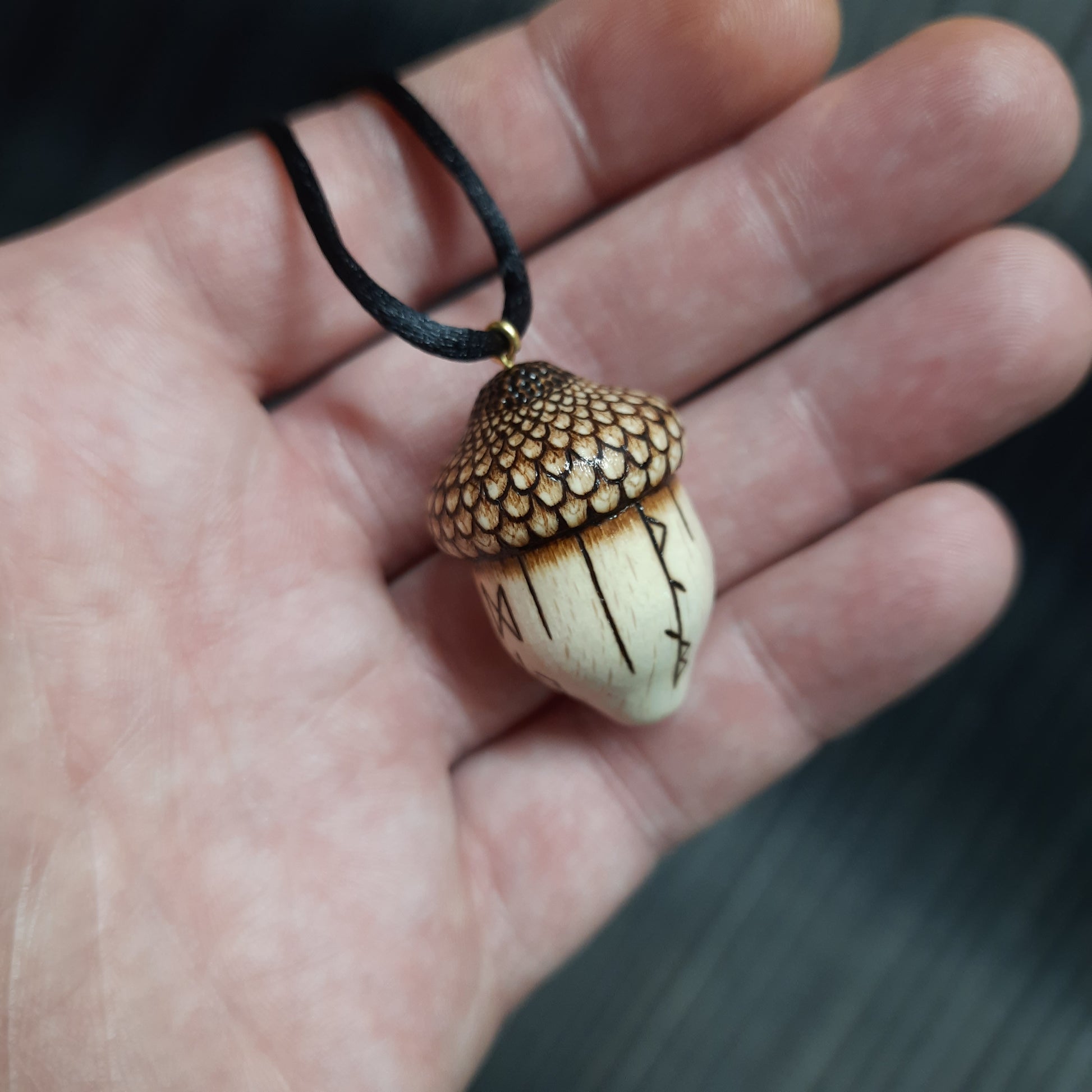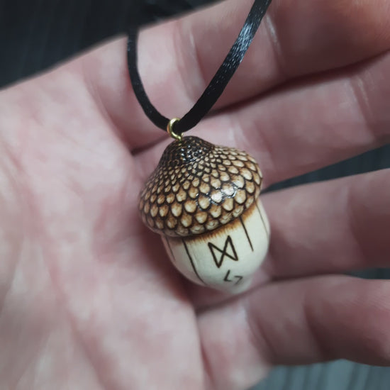 Amulet wooden handmade "Runic acorn" (251121-2)