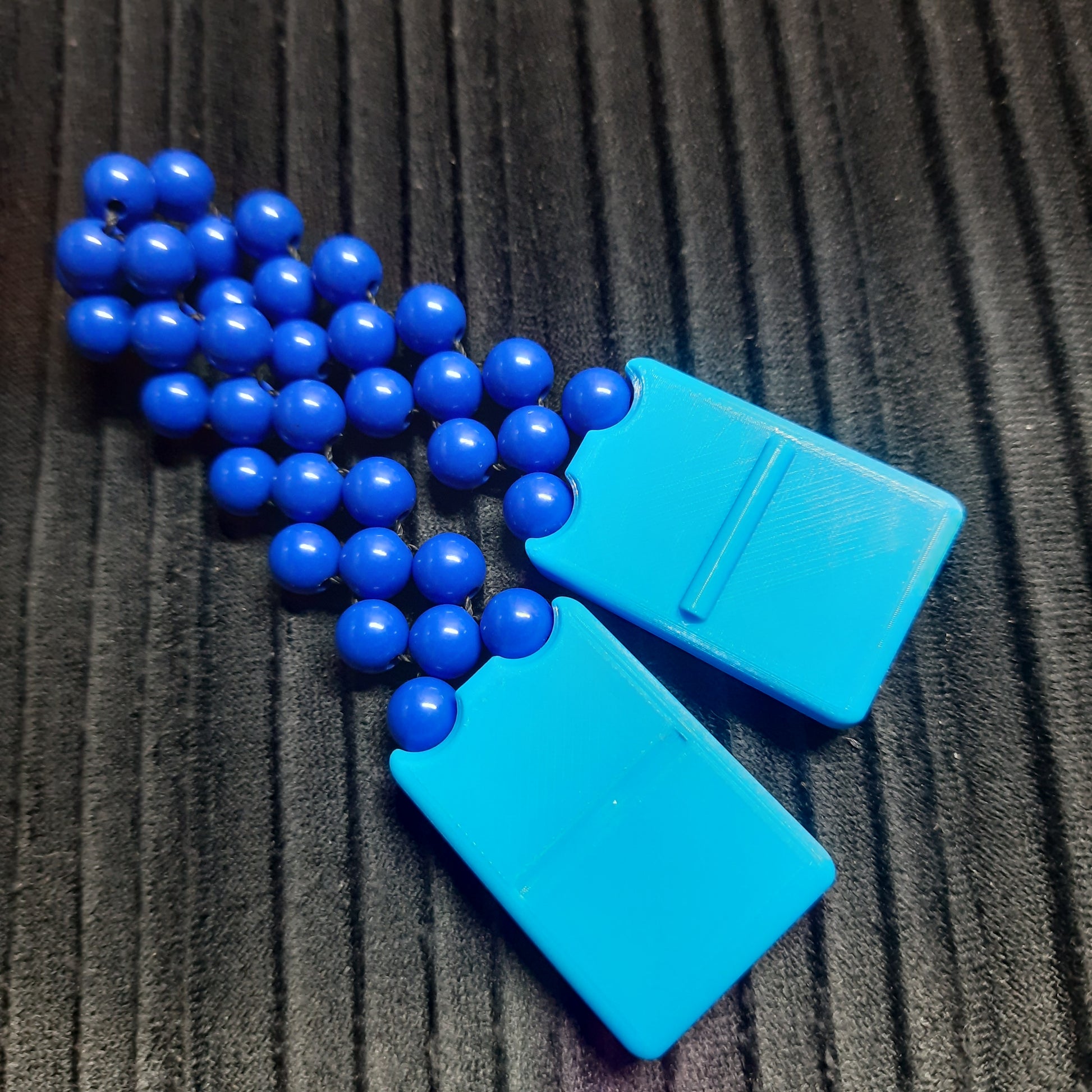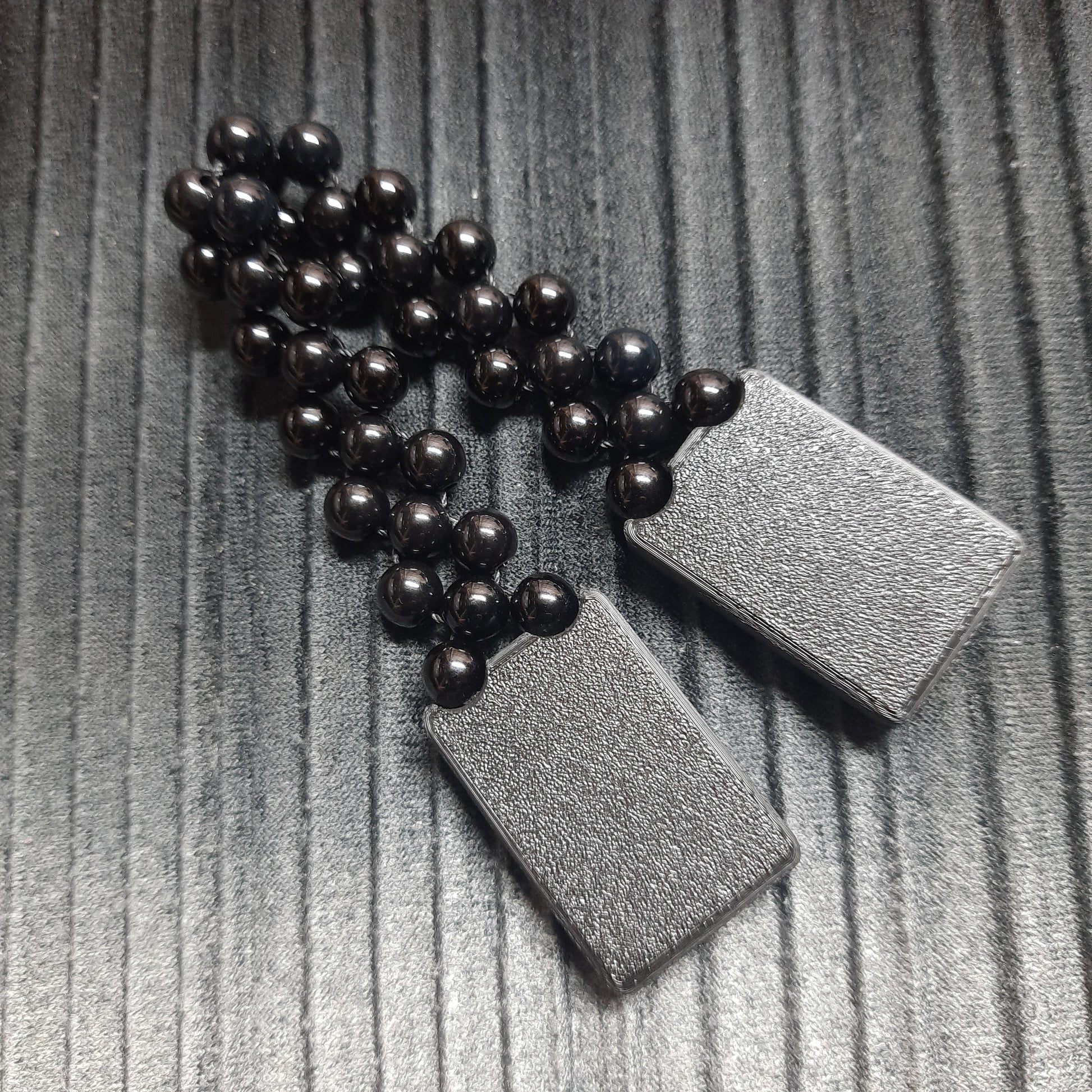 A versatile 3-in-1 model. I developed this model for those who want several fidgets in one. The weights on these chotki combine a magnetic slider and a magnetic clicker. I weave the track connecting these weights using a zigzag technique from round acrylic beads. This track is pleasant to the touch and perfectly flexible for performing a wide range of tricks.