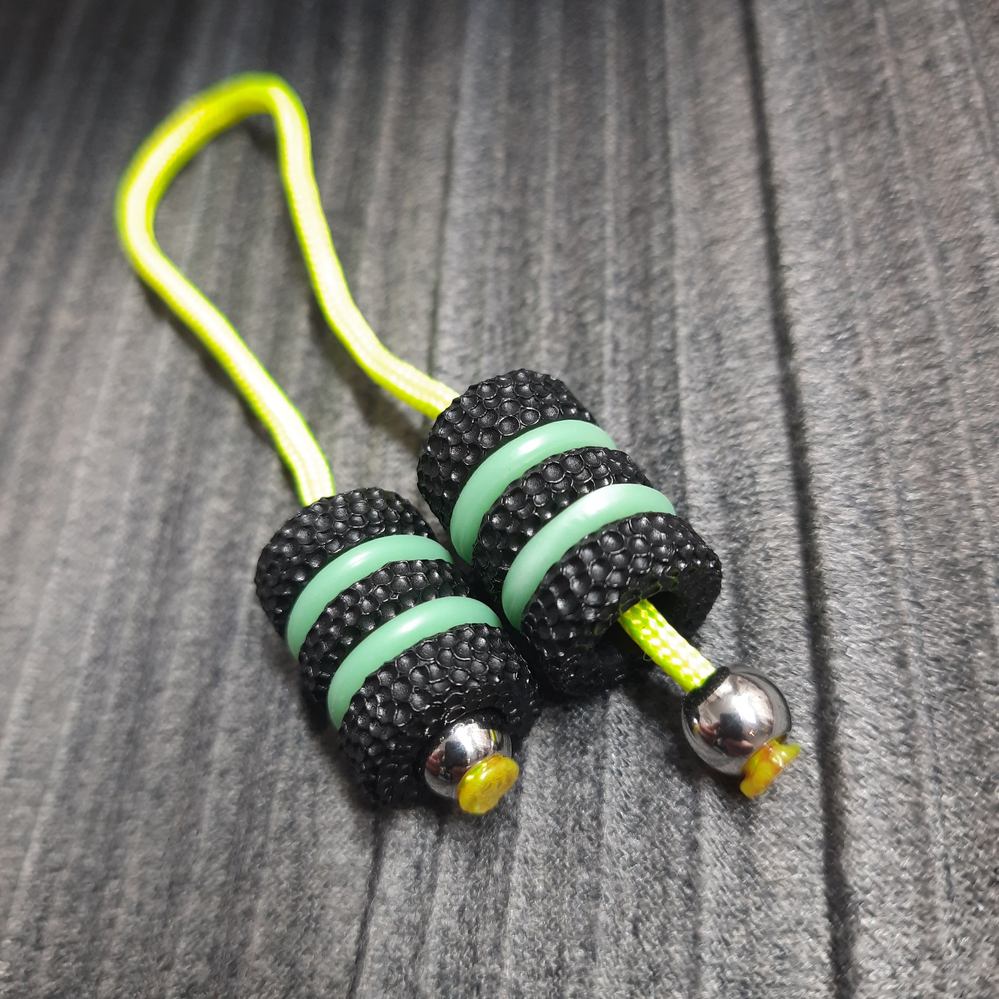 Materials: Polyacetal (delrin), stainless steel, silicone, polyester cord.