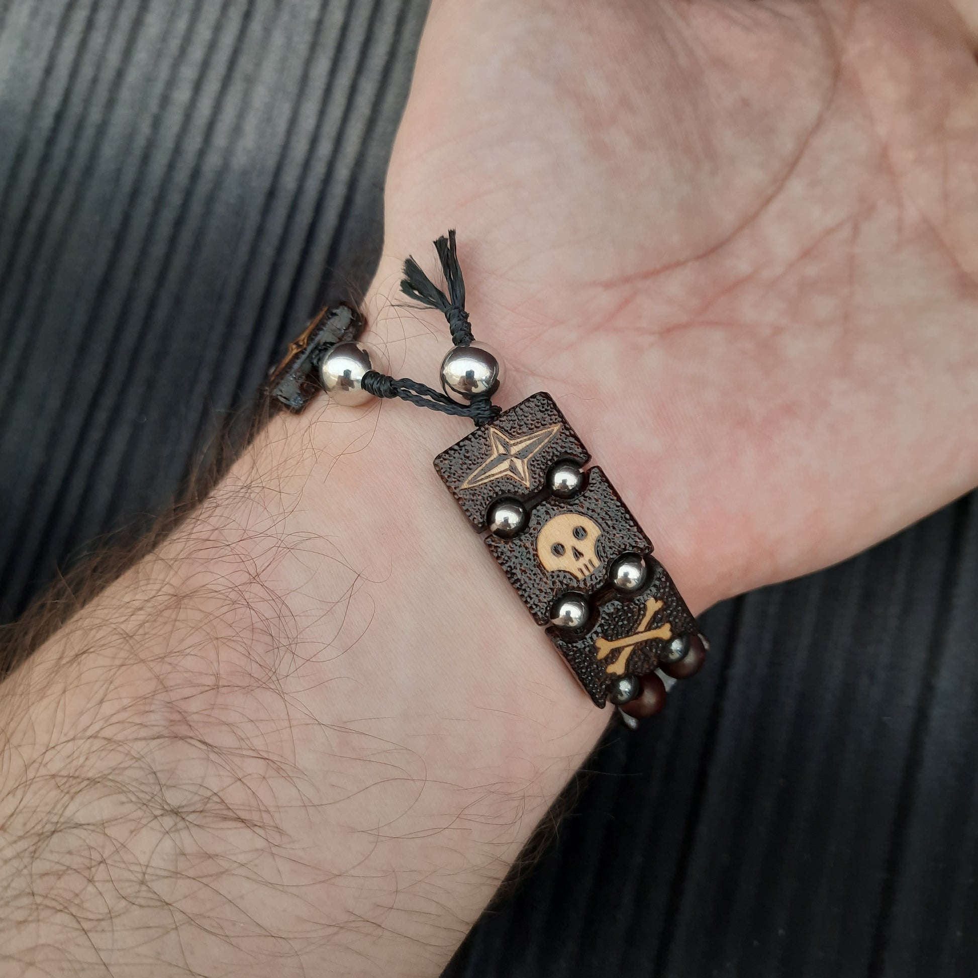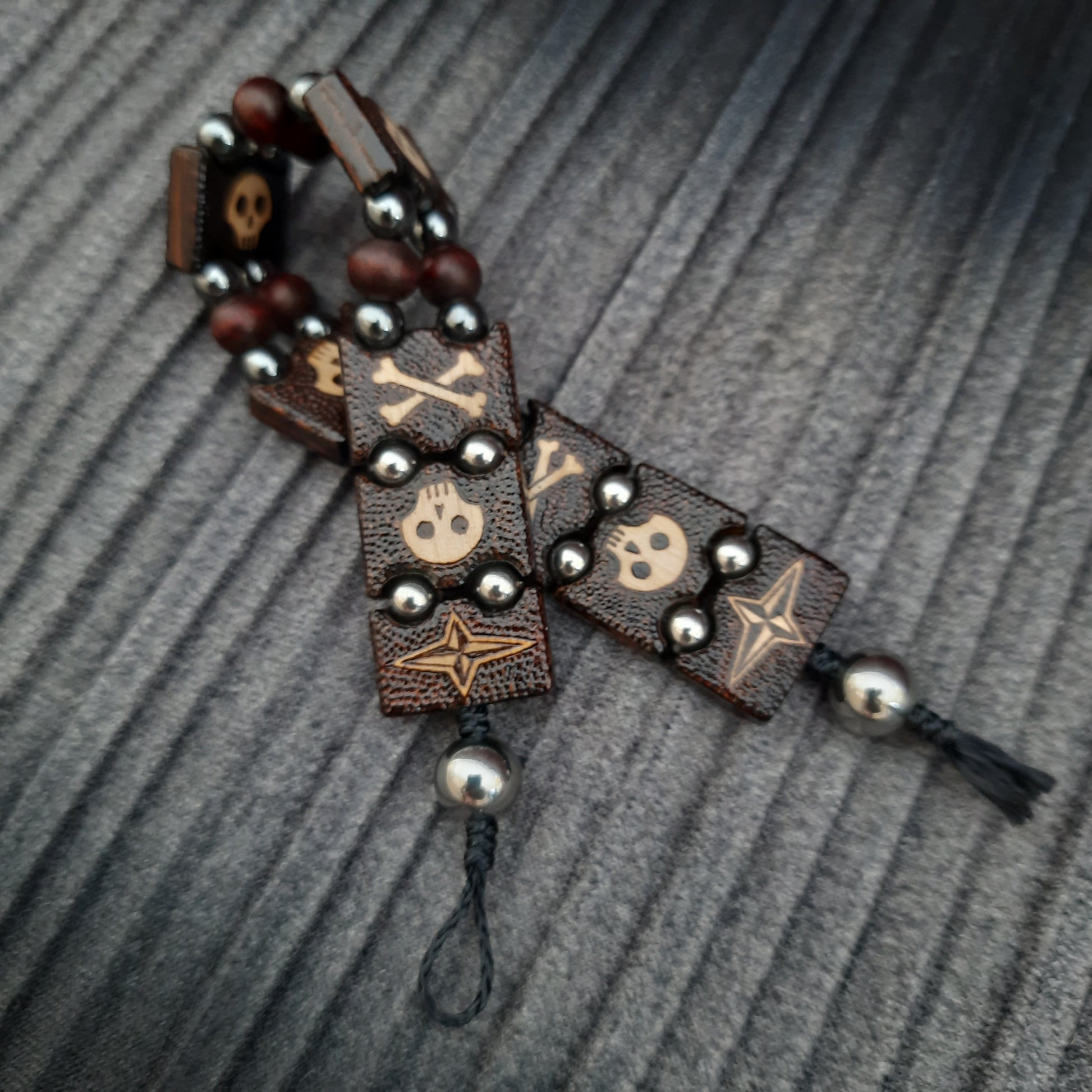 Chetki bracelet "Black Pirate" wooden rosary, anti-stress meditation and finger training, anxiety beads (SCU: 240811)