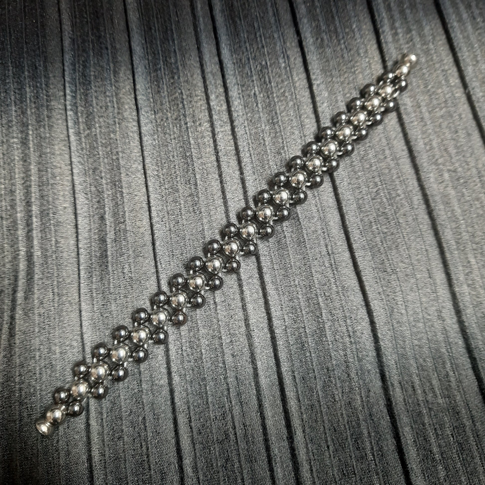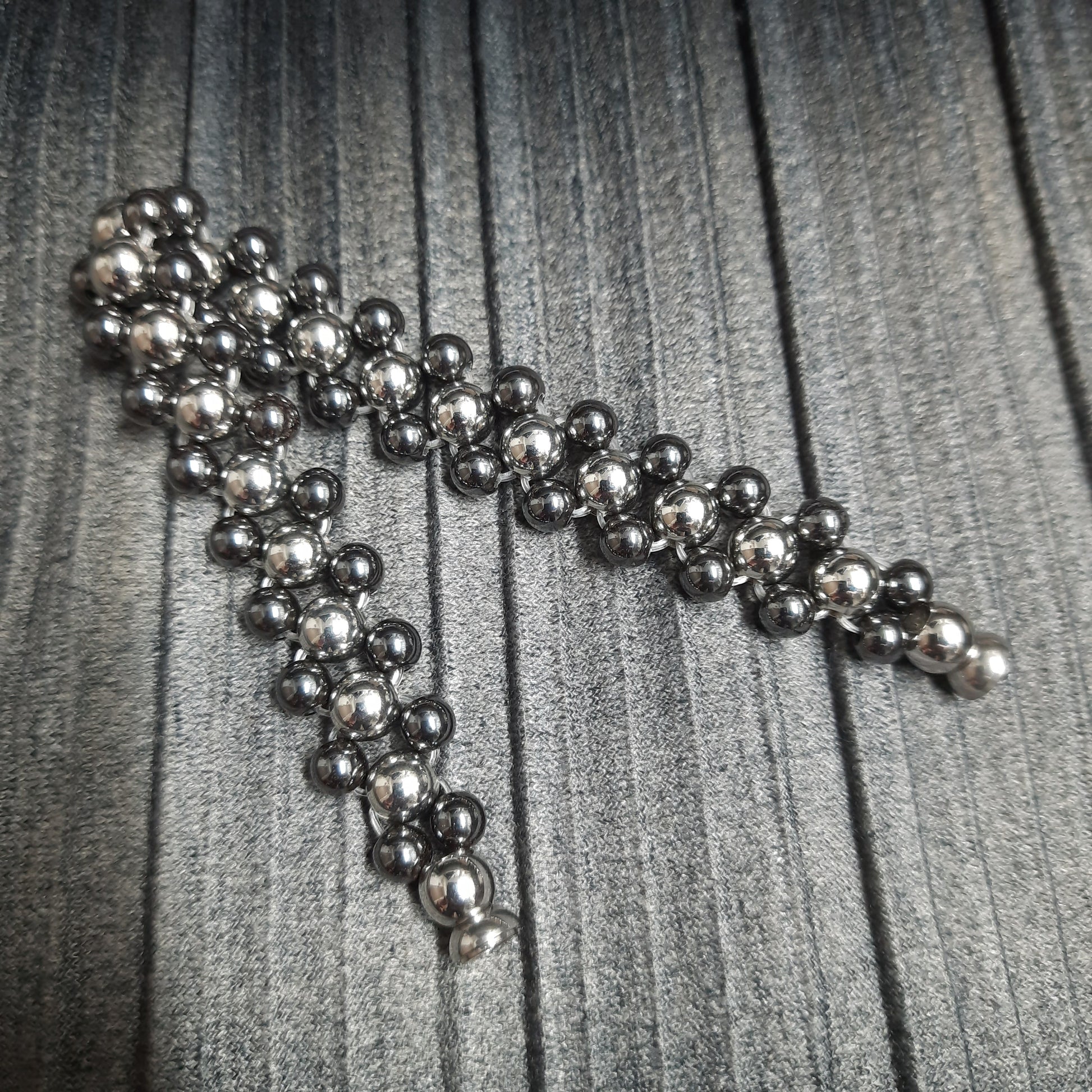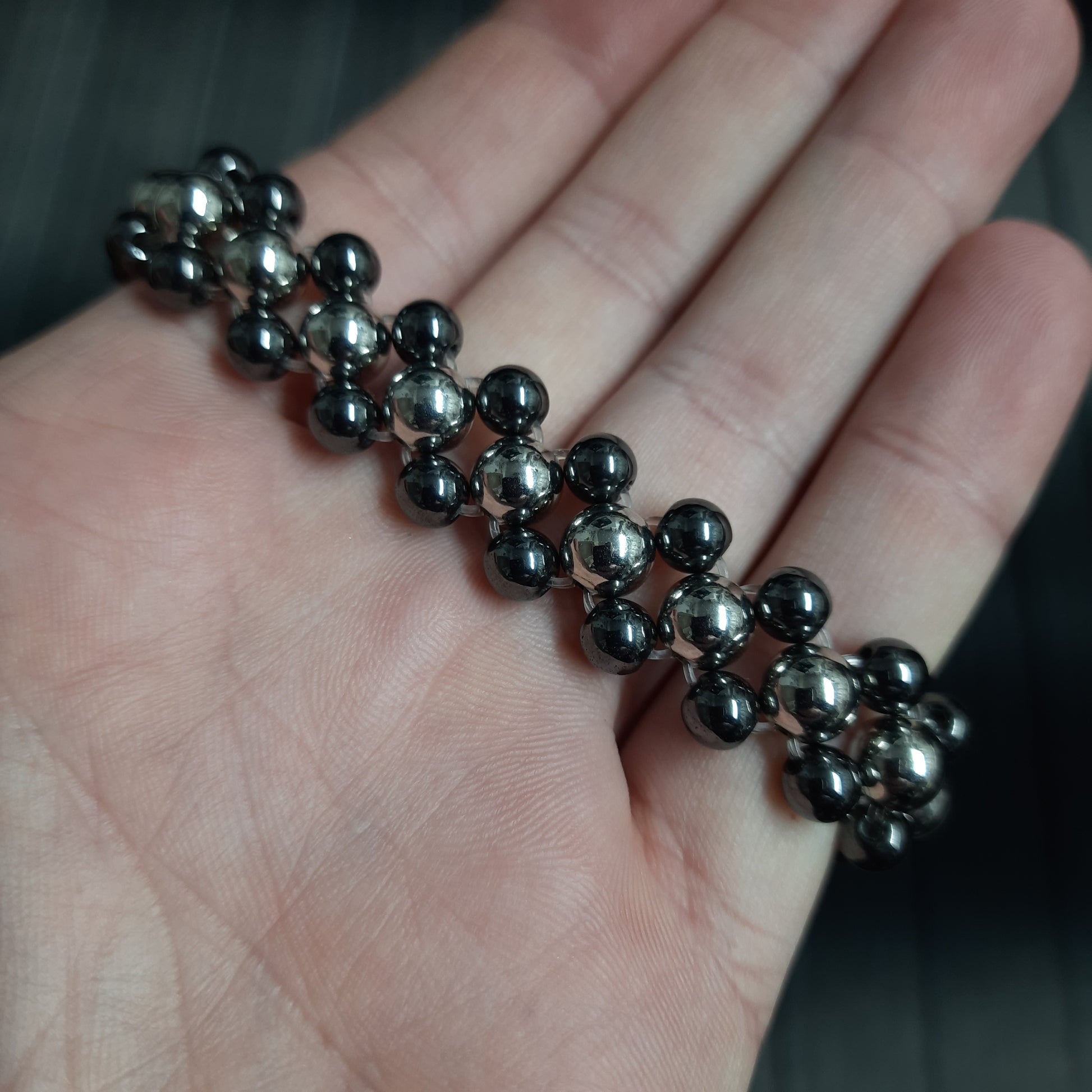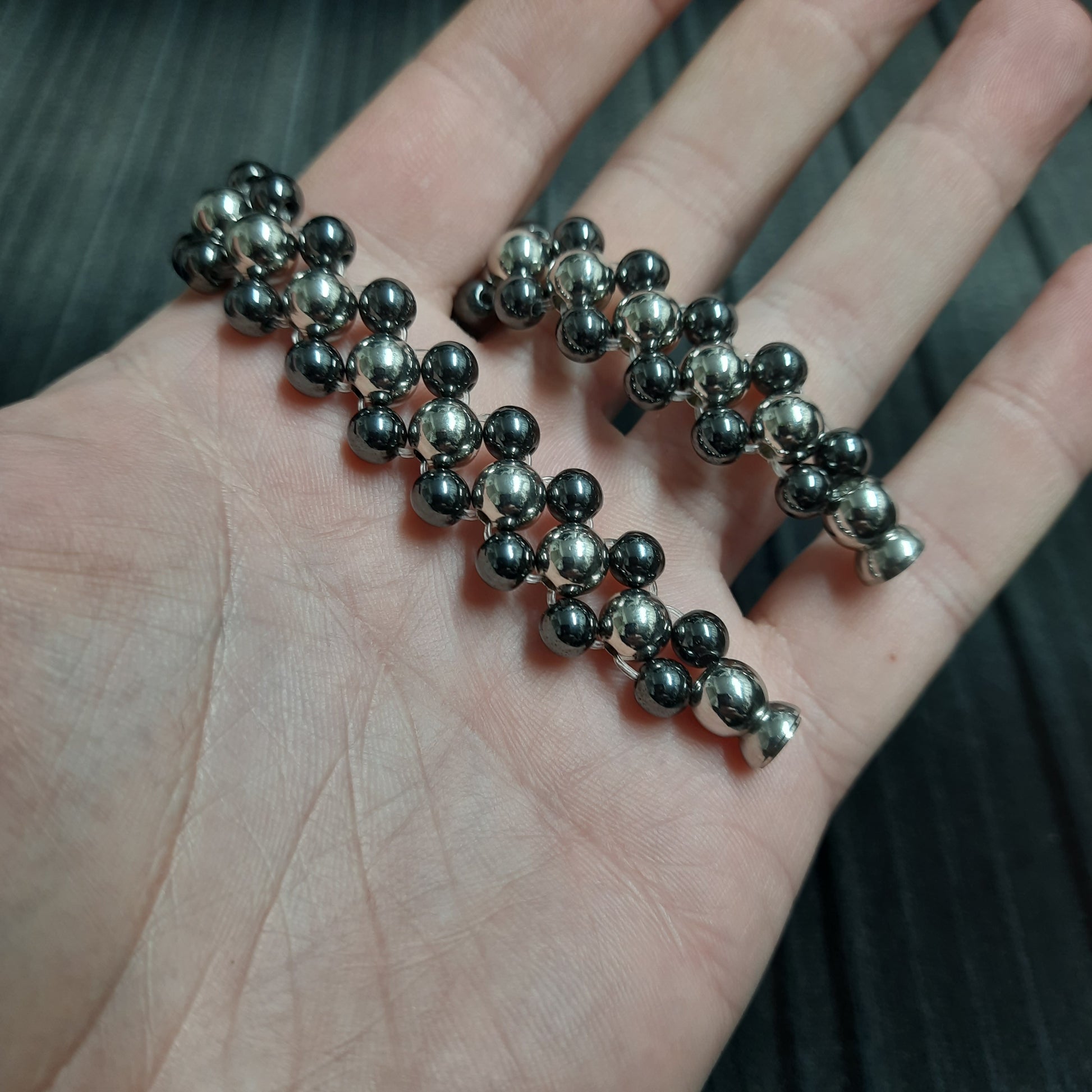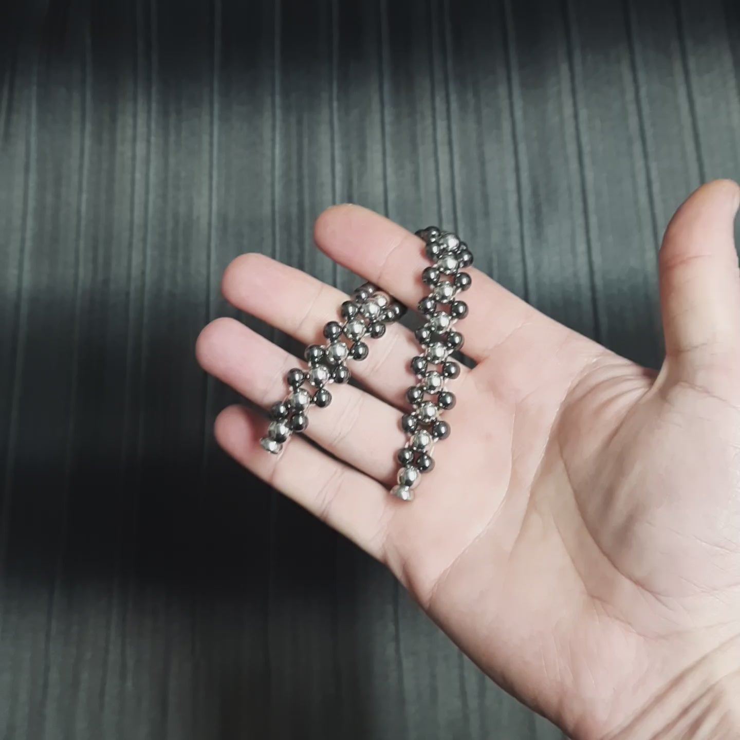 Materials: hematite, stainless steel, acrylic, neomagnet, silicone cord.