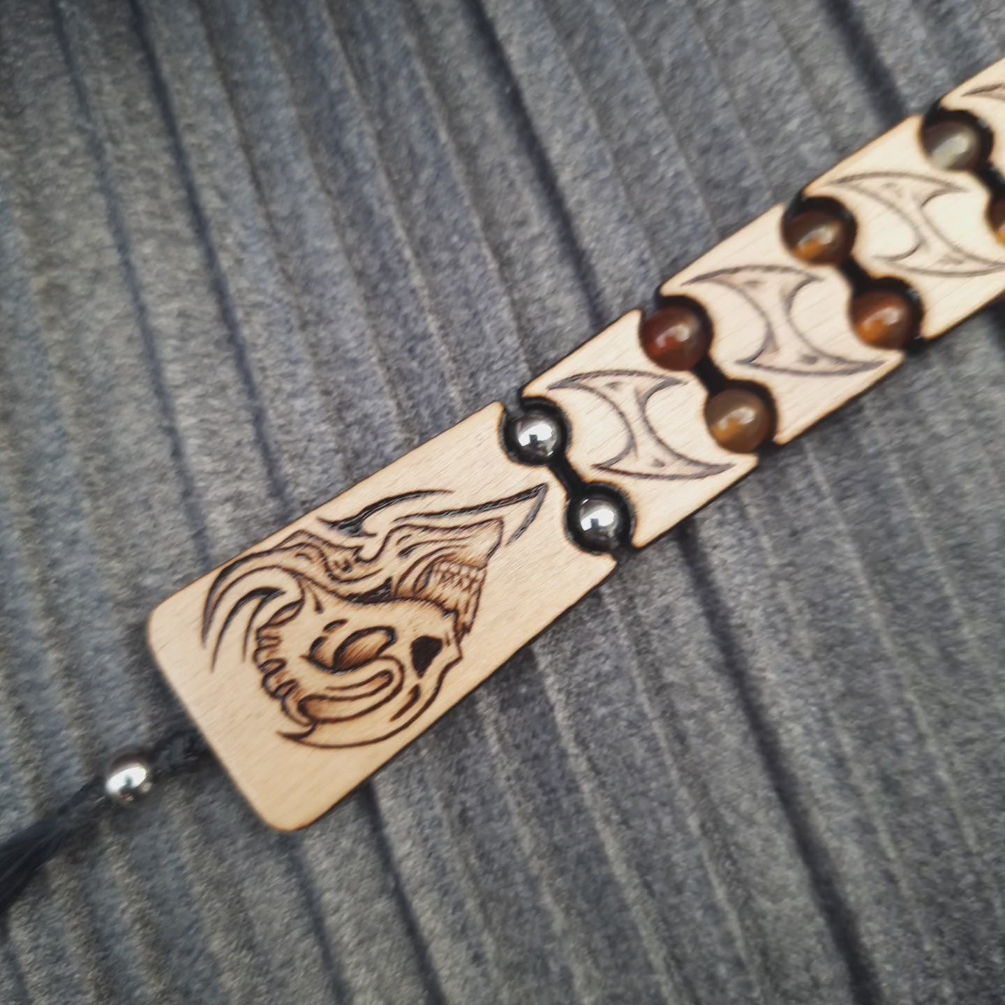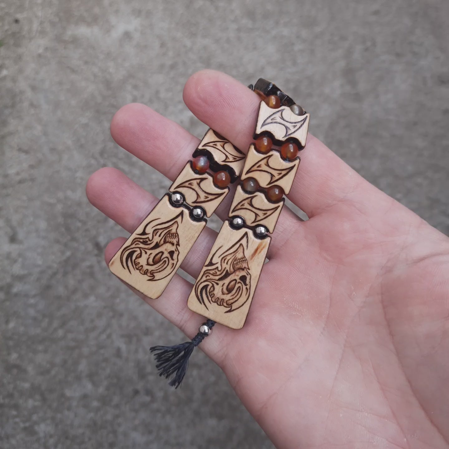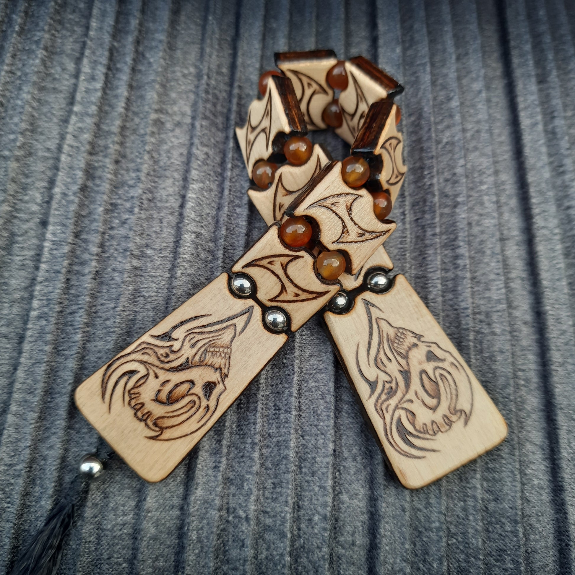Materials: kevlar cord, wood, carnelian, stainless steel.